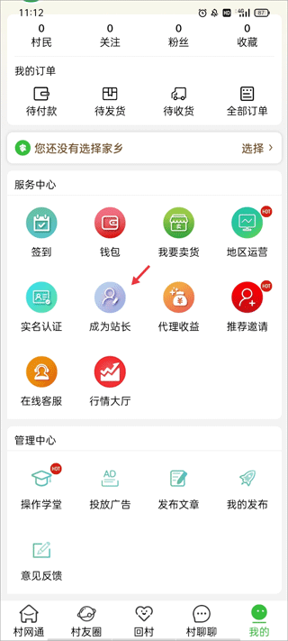 一、村网通注册站长需要多少钱1、注册账号并登录进来,从主页面切换到【我的】界面,选择服务中心的“成为站长”。