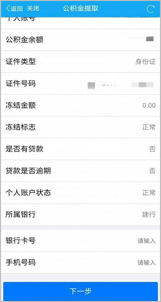 点击“提取办理”,填写建行卡号和手机号。