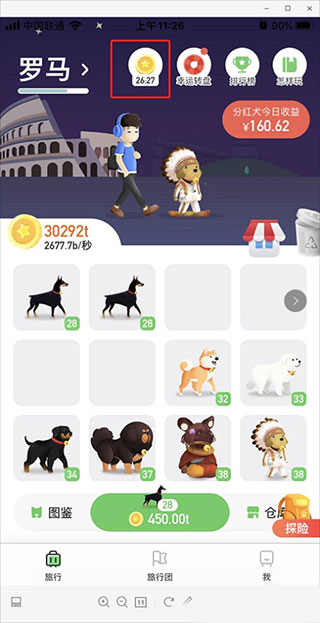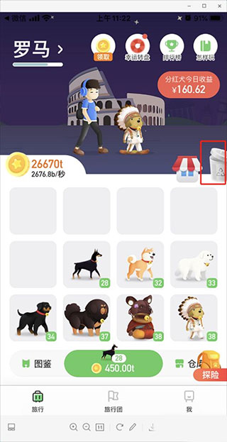 旅行世界升级狗,需要使用金币,金币可以通过签到领取。