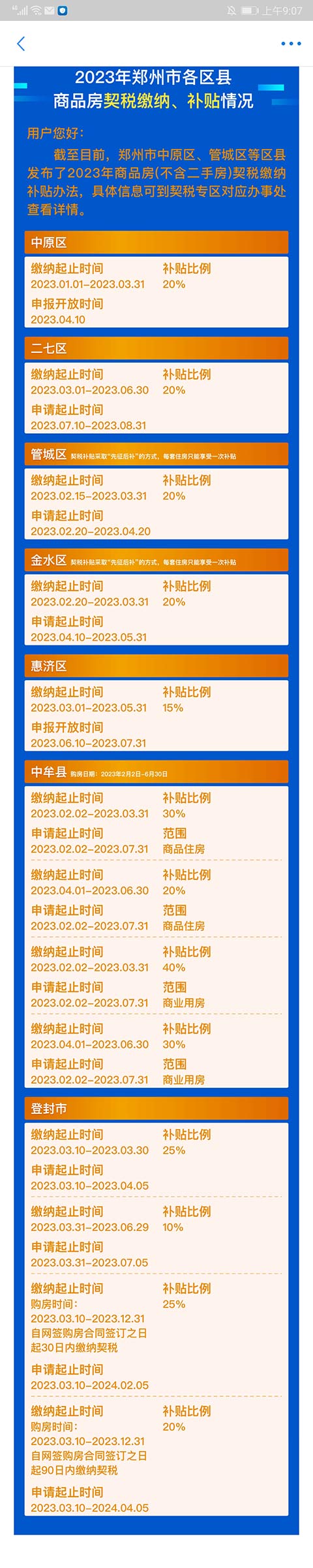 2023年郑州市各区县商品房契税缴纳、补贴说明