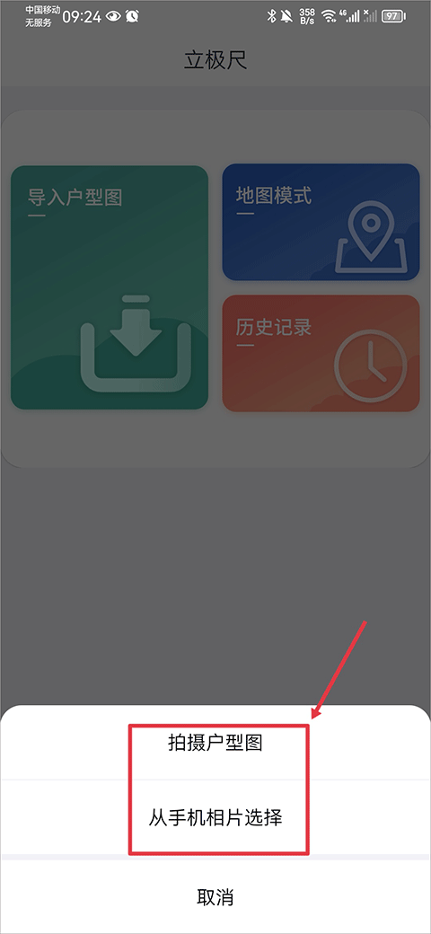 1、打开问真罗盘app后,在立极尺界面中点击导入户型图