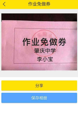 4、在“学校”恶搞页面下,你可以选择“开学寄语”、“装逼短信”、“作业免做券”、“代写寒假作业”等等,我觉得“作业免做券”这个就比较有趣。打开页面,输入名字,输入学校,就可以一键生成你想要的效果。