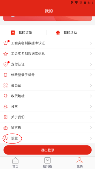 1、打开苏工惠APP,点击“我的”,进入个人界面;2、在个人信息界面中,点击“设置”;
