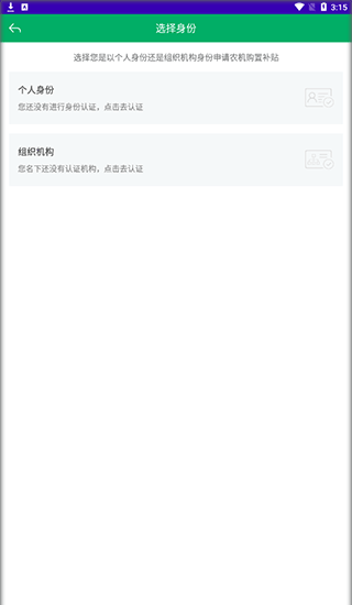 3、选择您的身份,可使用您的个人身份或是进行组织机构认证;