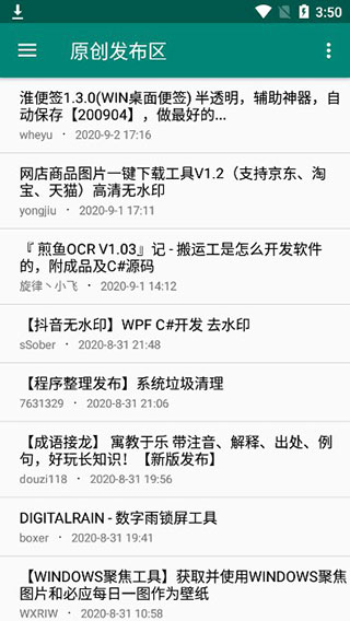1、再本站下载打开软件,进入首界面原创发布区,可看到许多都是论坛网友原创分享的;