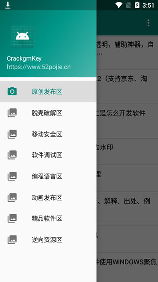 1、论坛板块大全原创发布区、脱壳破解区、软件调试区、移动安全区等