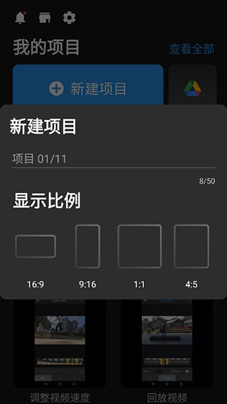 2、打开后,点击新建项目,选择你要剪辑的视频比例;