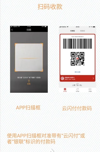 使用APP扫描框对准带有“云闪付”或者“银联”标识的付款码。收款成功后,会自动提现至已绑定的借记卡上