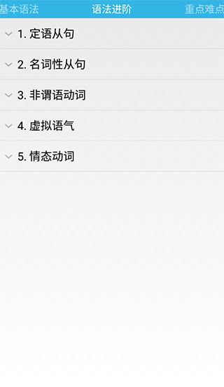 grammar app是一款非常好用的英语语法学习软件,该软件能够精准的了解每一个知识点,汇集丰富语法知识,掌握精髓,还有在线课程随时答疑,语法进阶。考点难点等,知识点非常详细,用户无需担心学不会英语了。同时软件中所有语法讲解都是非常详细,你可以左右滑动切换语法章节,你也可以收藏每一个语法章节,并它的每一类语法讲解里面还分类了很多具体语法讲解,例如动态的时态包括:一般现在时的用法、一般过去时的用法、一般将来时、一般现在时表将来、现在完成时、过去完成时、将来进行时、时态一致、时态与时间状语等。此外,在grammar app中的所有语法讲解以文字的形式展示,包括语法讲解、具体的实例、具体的问题,帮助你学好英语语法,欢迎有需要的朋友下载体验。