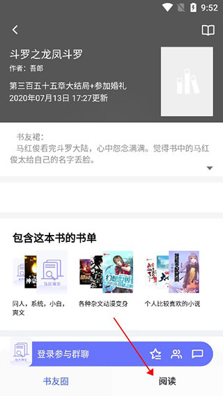 4、随便选择一本感兴趣的小说,点击右下角的阅读即可;