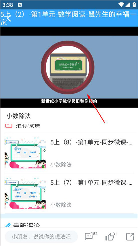 2、打开阅读故事后,用户可播放观看数学阅读故事视频,还可以留言评论和点赞;