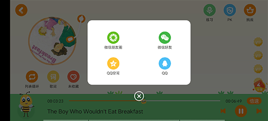2、在绘本播放页面点击右下角的分享,即可分享到微信\qq等。