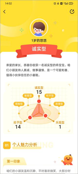 支持所有新用户首次登陆,根据填写的孩子个人信息,获取儿童行为习惯成长解读报告;测评报告可以一键分享到朋友圈,体验更方便。