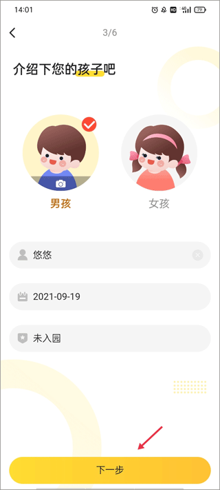 4、第三步是介绍自己小孩,像头像、出生日期,昵称等。