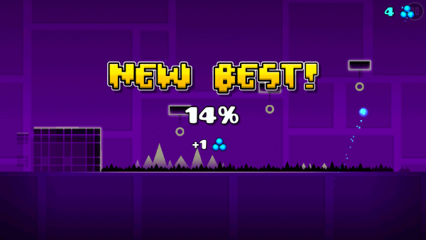 难度高虽然阻拦了玩家的前进脚步但是也让作品变得非常的耐玩,你在挑战中要点击屏幕还要帮助自己的在几何方块中躲避各种障碍,玩家要一路前进并通过DIY关卡的制作功能自制关卡,还能在游戏中发布让其他的玩家挑战。