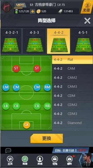 另外,玩家可以根据自己现有的球员进行阵容的调整,比如自己实力强的前锋较多时,可以选择4-4-2或者4-3-3阵容,发挥出自己球队最大的实力