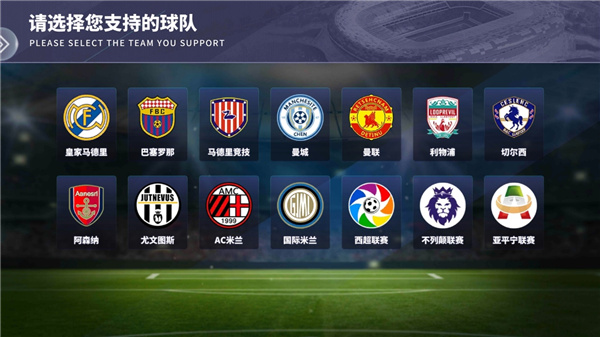 进入游戏,先是一个简易的新手教学环节,之后就是选择球队了。说实话,看到这张图的时候我笑了,这都什么乱七八糟的啊。不过转念一想,听说这个游戏只拿到了FIFPro(国际职业足球运动员联合会)的授权,并没有联赛、俱乐部、球场的授权,所以只能把队徽、联赛名称做点小修改。这样做无可厚非,毕竟不能侵权嘛。但是拜托能不能做的稍微有水准一点啊,先看马竞那队徽,再看看所有队徽上的文字,唯有一声叹息。