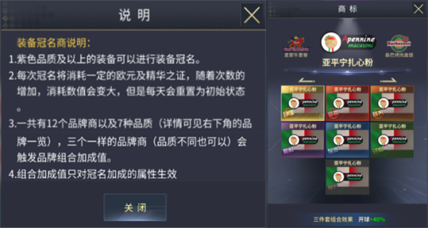 在刷新前可以对满意的冠名进行上锁,当你同时拥有三个相同的品牌时,还可以触发品牌组合加成。