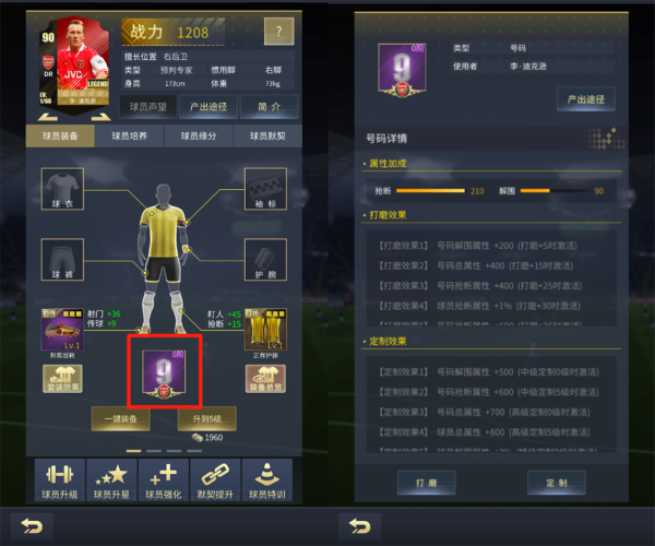 当你为球员选择了专属号码后,除重生外你将不能对号码做出改变,所以选择时要慎重考虑~号码选择完毕就可以对它进行打磨与定制,从而提升它为你带来的属性收益。