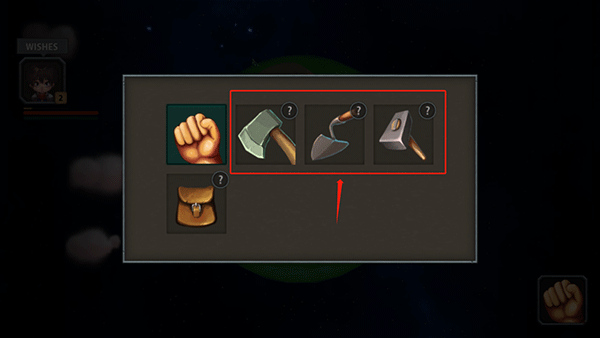 4、想要制造更多有用的工具,玩家需要去采集需要的资源,而有些资源需要对应的工具才可采集,比如锤子采集石头,斧子采集木材等等,这些工具都可以制造出来,首先点击星球上的帐篷