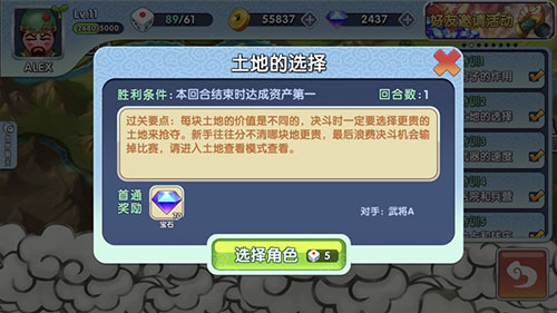 过关要点:每块土地的价值是不同的,决斗时一定要选择更贵的土地来抢夺。新手往往分不清哪块地更贵,最后浪费决斗机会输掉比赛,请进入土地查看模式查看