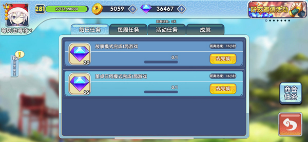 每日任务里每天有200钻左右的任务,稍微有点预算的建议玩家弄月季卡(月卡每天领100钻,季卡每天领100钻)这样一来,每天大概有400钻收入。那么一个月下来就有12000钻。