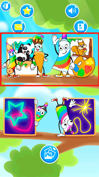 1、进入游戏后,点击红色方框内的按钮可以开始填色了;