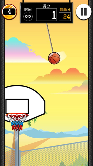 下坠灌篮手机版是一款挺有意思的投篮游戏,英文叫Basket Fall。玩法有点新鲜,不是传统的运球投篮,而是要割断吊着篮球的绳子,让篮球自由下坠进筐。感觉挺有挑战性的,因为每次进球都需要精准判断时机和力度,难度会随着进球次数增加而变大。