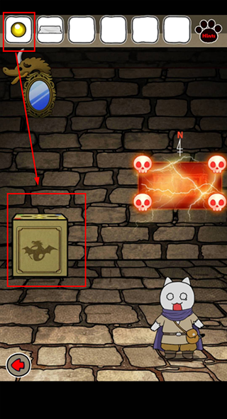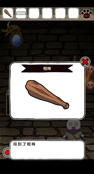 3、往右2次前往有镜子的房间,把黄色宝石装在有飞龙的黄色盒子上,打开底座获得棍棒
