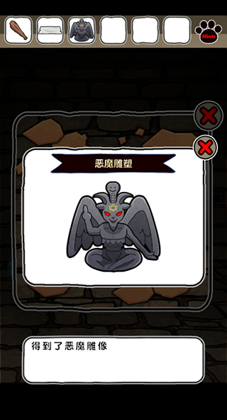 4、返回有铁栏杆的房间,用棍棒打碎放在地上的两个罐子,打开地板上的门获得恶魔雕塑