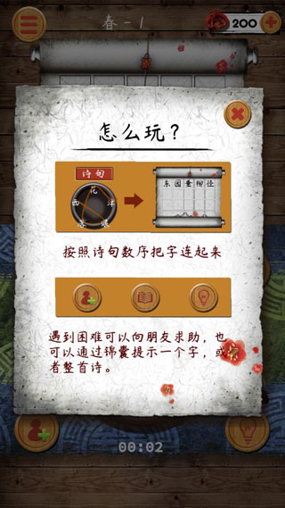 不背诗词是一款寓教于乐的诗词学习游戏,主要适用于中小阶层的学生们,蕴含五大类,与18个的主题相契合的关卡谜题供你探讨,并按照不同的形式为你完美展现古诗词的魅力色彩,游戏画风背景写实,玩法也比较新奇,通过连线的方式补充诗歌的完整,《春晓》,《相思》,《滁州西涧》等经典诗词全部囊括其中,同时还有好友求助、锦囊妙计等玩法加入其中,让你尽享更为不一样的诗词游戏体验,喜欢的朋友快来背诗词吧!