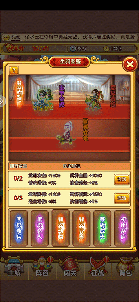 11、关于战马的选择,这么几个马是必须的,防御,攻击,速度,天马,其次可以增加个暴击和闪避,然后根据你武将的技能来选择战马吧~