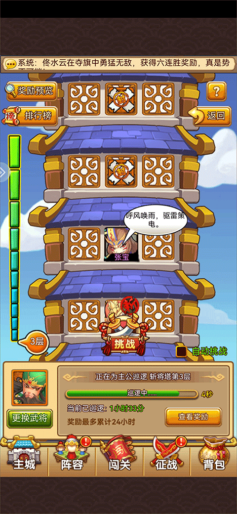 6、努力学习推图吧,推图有银币有金币有将魂,推图前4章通用3炮3军1法1弓(3炮2军2法1弓)都可以;第5章后需要3弓3法,但是离你们还很遥远,所以之前就那个组合就好,炮升级晕炮,弓升级弩,法升级冰法,军升级电