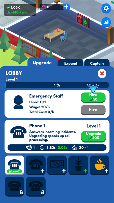 10、钞票奖励玩家可以用来置办各种设施,如餐厅、厕所等等,玩家需要解决消防员的各种需求。