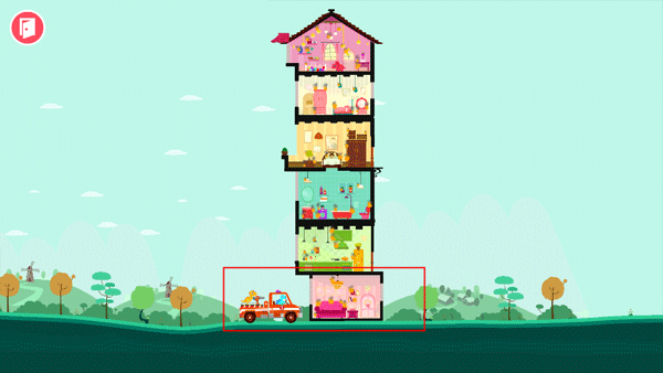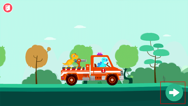 2、在去事发地之前,恐龙消防员需要坐上车,按住右边的方向键快速开车到达灭火点。