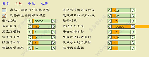 手机版中目前设置共分为基本、人物、参数、电脑四个选项卡。四项设置的修改均对存档有效,但需要勾选开启作弊功能。