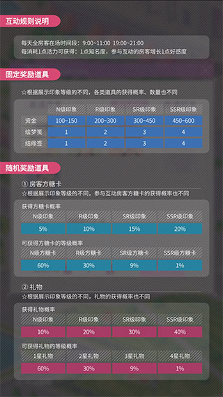 房东在印象集中设置好展示印象之后,就可以使用互动功能了。馆外互动是房东通过与房客互动获取资源的系统。点击房客头像邀请房客,每位房客互动消耗一点活力,好感度冻结及外出不可互动。还可以邀请好友互动,可以获得友情点数。互动房客展示印象稀有度越高,获得奖励越多哦~