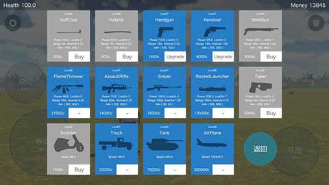 6、击杀任何生物都会获得金钱,在右上角可以使用金钱来购买装备,不用说,越贵的武器越好用,不过好岛游戏操作麻烦,选择一个攻击范围大的武器会比较好。