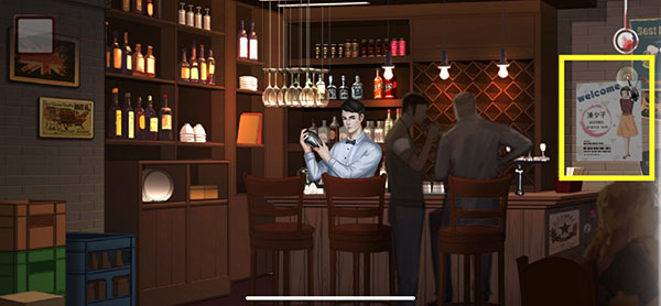 6、玩家需要回到酒吧再次进入剧情,然后就会提示【偷看何兴童的手机】,而开机密码就是海报上女明星的生日【0112】