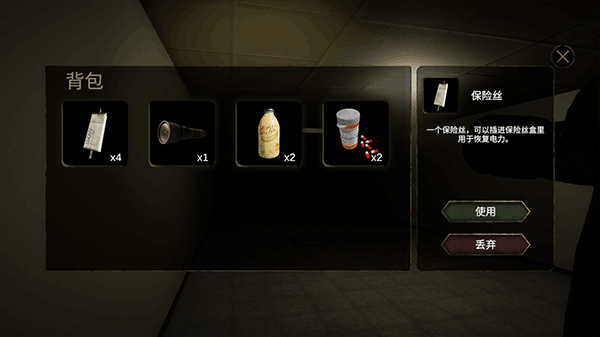 5、点击左侧的背包还可以查看中途拾取的药品等等,在这个过程中会有一些恐怖的存在会抓捕你,你需要时刻注意