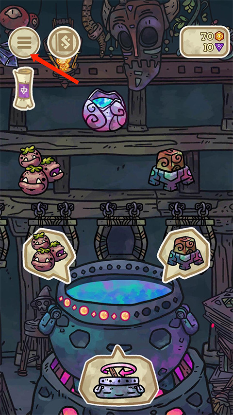 8、选择左上角【三条杠】图标,包括【书籍】、【炼金术士】、【商店】、【坩埚】、【提示诀窍】接【每日奖励】,