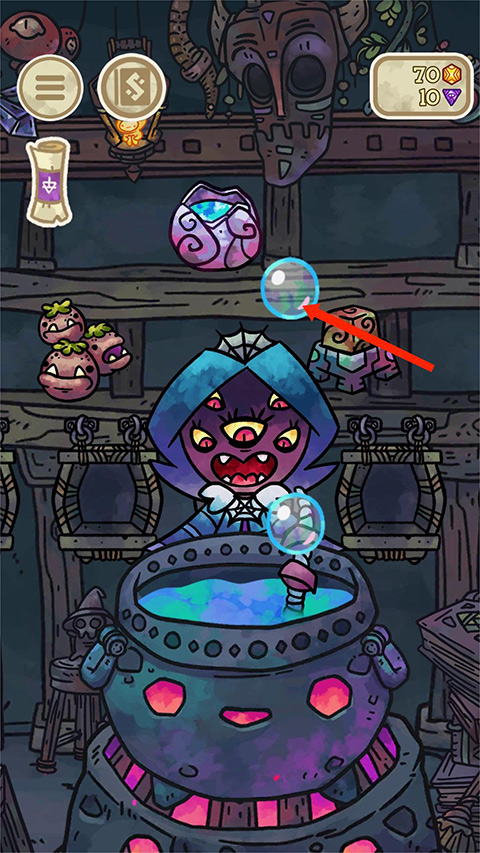 2、在搅拌时坩埚中会冒出泡泡, 点击它们有时会得到一些金币和宝石,