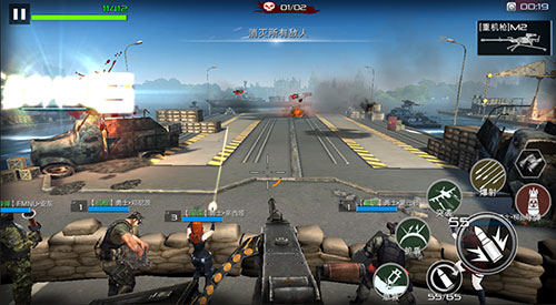 但是尴尬的问题总会出现,子弹射光了,面对这个移动堡垒,我们还能有什么办法呢?对,没错,在1-3的时候,我们获得了一把新的武器,就是在屏幕左下方的重机枪,点击切换到重机枪,将这辆重型坦克击毁吧!