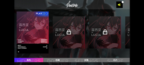 4、设置好后,点击角色,游戏内拥有多首音乐可以挑战,并有着简单、正常、困难三种难度,玩家选择好角色后点击play开始;