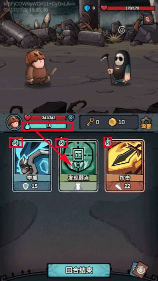 【核心战斗】每回合消耗1张在冒险中捡到的卡牌,敌我双方轮流发起行动