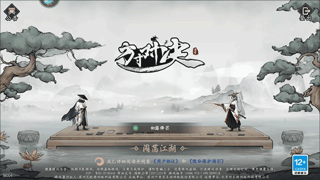 1、运行游戏后,在标题界面点亮“我已详细阅读并同意用户协议和隐私保护指引”后找到并点击“闯荡江湖”的选项即可进入游戏;