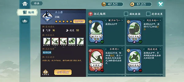 轻功、追风步(核心加臂力工具卡)一定要提早弄出(事了拂衣去)这张卡,关键加臂力的卡。下位替代水上漂(说实话差远了,实在没有也能用)