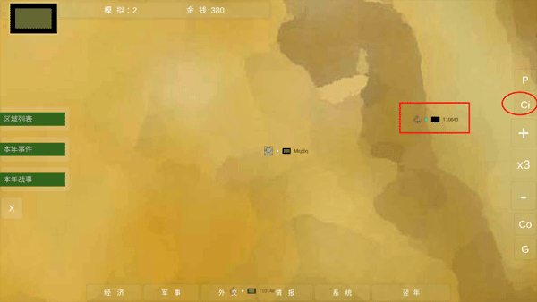 情报包括区域列表、本年事件、本年战事,这些会显示不同区域间所发生的的各种讯息;