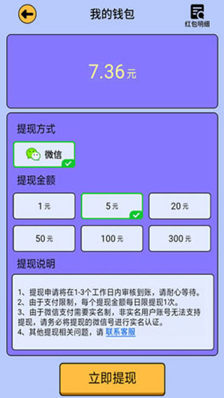 4、提现规则:提现无门槛,满1元即可提现,永久有效!