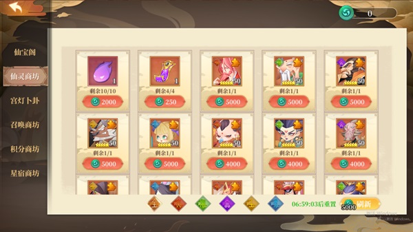 召唤商坊需要五行召唤卷碎片,这里能兑换的仙灵是很强的,最好是慢慢存不要乱花。